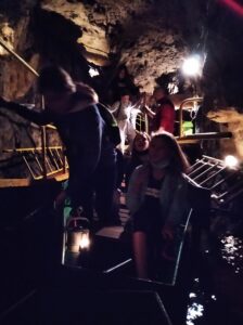 i Szczęść Boże. Surowe warunki panujące w podziemiach kopalni, charakteryzujące się niską temperaturą i dużą wilgotnością powietrza, pozwalają poczuć klimat dawnej górniczej pracy. By dodatkowo ożywić atmosferę zwiedzania, podziemia zostały wypełnione efektami dźwiękowymi. I tak z oddali można usłyszeć odgłosy ciężkiej pracy gwarków, kopalnianego zawału, jadących wózków oraz robót strzałowych. Jedną z największych atrakcji trasy jest przepływ łodziami. Kursują one między dwoma przystaniami zlokalizowanymi przy szybach Szczęść Boże i Żmija. Podróż dawnym chodnikiem odwadniającym dostarczyła uczniom niezapomnianych przeżyć. Zmęczeni, ale pełni wrażeń