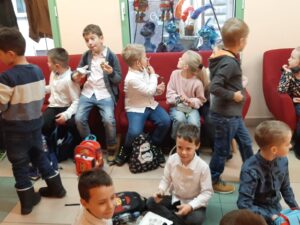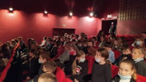 W oczekiwaniu na przybycie św. Mikołaja uczniowie klas młodszych 1-3 wraz z wychowawczyniami wybrali się w środę 1.12.2021r. do Teatru Banialuka w Bielsku – Białej. Przywitały nas szeroko otwarte drzwi teatru, w którym już dawno nie gościliśmy, w prawdziwie świątecznej szacie. Podczas specjalnie zarezerwowanego dla naszych uczniów spektaklu pt. „Amelka, bóbr i król na dachu” przenieśliśmy się w świat wyobraźni, podziwiając zachwycającą grę aktorską i wspaniałą scenografię. Amelka to dziewczyna o złotym sercu, która zostaje wysłana przez macochę do Szepczącego Lasu po garnek czarnego miodu. Po drodze pomaga wszystkim potrzebującym, którzy zostają jej przyjaciółmi i towarzyszą jej w wędrówce i szczęśliwym odnalezieniu ojca – zaplątanego króla. Były wzruszenia, śmiech, trochę tajemniczości i trwogi, ale przede wszystkim dużo radości i dobrej zabawy. Przeżyliśmy spotkanie z kulturą przez duże „K”.