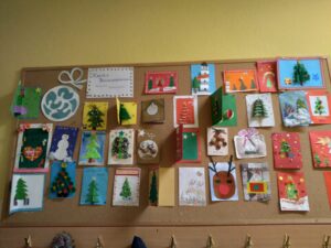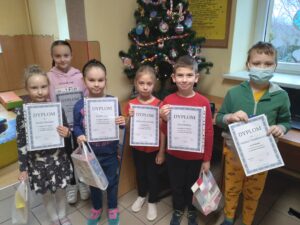 W dniu 16.12.2021r. odbyło się uroczyste rozdanie dyplomów i nagród za konkurs szkolny ,,Kartka Świąteczna”.