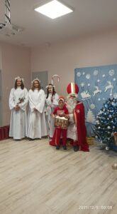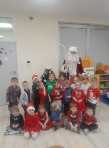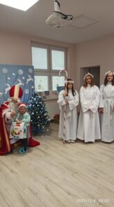 Wizyta Świętego Mikołaja w przedszkolu to ważne wydarzenie dla wszystkich dzieci! Od samego rana w placówce panowała radość i poruszenie. Przedszkolaki z wielką niecierpliwością oczekiwały przyjścia niezwykłego gościa. Święty Mikołaj przybył do naszego przedszkola w towarzystwie pomocników – Aniołków. Z wielką uwagą wysłuchał przygotowanych przez dzieci piosenek i każdego grzecznego przedszkolaka obdarował upominkiem. Dziękujemy Ci, Święty Mikołaju! Do zobaczenia za rok!