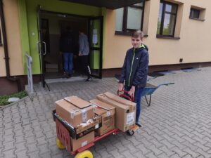 13 maja 2022 zbieraną skrzętnie przez wiele tygodni makulaturę przekazaliśmy firmie „DIL surowce wtórne”. Wczesnym rankiem grupa 18 chłopców z klas ósmych pod opieką Pana Andrzeja przetransportowała całą piwnicę makulatury do samochodu. Choć do szkoły mieli na późniejsze godziny stawili się o 7 rano w składzie: Szymon Kasperkiewicz, Karol Marszałek, Szymon Bogdanik, Kacper Kubień, Kacper Mrowiec, Maksym Chowaniec, Szymon Mizera, Kacper Kasprzak, Szymon Bury, Bartosz Skupień, Sebastian Białożyt, Michał Rudy, Wojciech Mrózek, Kramarz Michał, Szymon Nawrot, Szymon Rajda, Maksymilian Sordyl, Wojciech Skupień.
