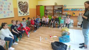 prawidłowo segregować śmieci, a na zakończenie zajęć zagrały w grę edukacyjną, która sprawdzała