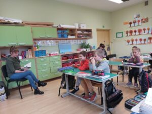 codzienne, głośne czytanie.Czytają dla nas: zaproszeni goście, pracownicy szkoły, rodzice, starsi koledzy.