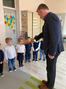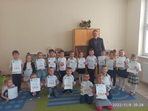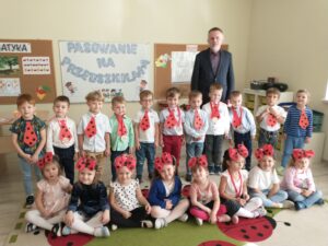 9 listopada 2022r. w naszym Przedszkolu odbyła się ważna uroczystość dla dzieci – Pasowanie na Przedszkolaka. Jest to wyjątkowe wydarzenie w życiu każdego małego dziecka, dla którego rozpoczęła się przygoda z przedszkolem. Dzieci z uśmiechami na twarzach zaprezentowały przygotowane piosenki oraz tańce. Dla większości z nich był to dzień pełen emocji i wrażeń z powodu pierwszego w życiu występu. Pan Dyrektor, kładąc duży ołówek na ramieniu każdego dziecka dokonał pasowania na prawdziwego przedszkolaka. Następnie dzieci zostały obdarowane medalami, dyplomami oraz prezentami. Dzień ten na pewno na długo pozostanie w pamięci przedszkolaków i nauczycieli.