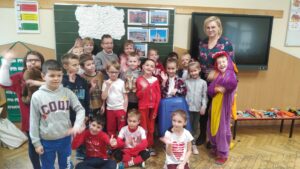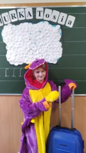 Po raz kolejny chmurka Tosia zabrała uczniów na wycieczkę, tym razem do Krakowa. Uczniowie klas 3b i 1a wysłuchały ,,Legendy i Smoku Wawelskim” a następnie przedstawiły przygotowane przez siebie prezentacje, plakaty. Niektórzy pięknie przebrali się w strój krakowski i recytowali wiersze o byłej stolicy Polski. Na koniec dzieci mogły przebrać się w strój smoka i zrobić sobie zdjęcie. Dziękuję paniom Grażynie Dybał i Iwonie Gużyńskiej za przygotowanie dzieci do zajęć.