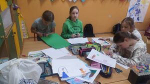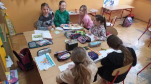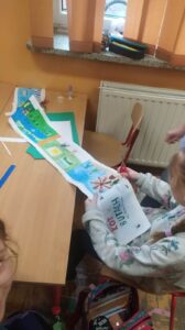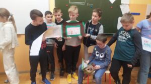 W ramach realizacji innowacji pedagogicznej organizowanej przez panią bibliotekarkę Barbarę Kolber uczniowie klasy 3b wraz z wychowawcą panią Bożeną Gałgan wykonali ilustracje do bajki ,,Kot w butach”. Ich staranne, dopracowane w każdym szczególe prace zostaną wykorzystane podczas lekcji w innych klasach. Trzecioklasiści poznali też z Chmurką Tosią kolejny kraj. Tym razem odwiedzili Francję, poznali kilka podstawowych zwrotów, zabytków i potraw.