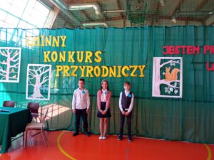 W środę 10 maja uczniowie klas trzecich: Oliwia Szczerbowska, Artur Kudłacik i Dawid Wojewodzic reprezentowali naszą szkołę w XIV Gminnym Konkursie Przyrodniczym