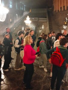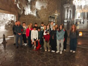 5 maja 2023 uczniowie klasy 7A wraz z opiekunami wybrali się na wycieczkę do Wieliczki i Krakowa. Najpierw zwiedzili Kopalnię Soli w Wieliczce. Szli krętymi korytarzami, pokonali około 800 schodów i zeszli na głębokość 135 metrów pod ziemię. Podziwiali wykute w soli piękne komory, a wśród nich najbardziej wyjątkową – Kaplicę św. Kingi. Widzieli podziemne jeziora i unikalne solne rzeźby. Potem uczniowie udali się do Krakowa, gdzie zwiedzili Muzeum Podziemia Rynku – muzeum multimedialne. Była to dla nich niezapomniana podróż w czasie.