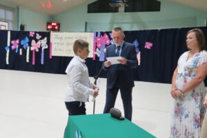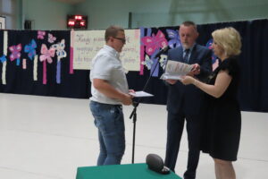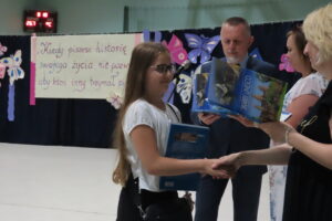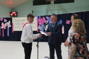 23. czerwca uczniowie, nauczyciele, rodzice zgromadzili się w sali gimnastycznej, by podsumować mijający rok szkolny. Pan dyrektor A. Kojder przywitał wszystkich i podziękował za trud, wysiłek, pracę i pogratulował sukcesów. Uczniom, którzy osiągnęli najlepsze wyniki w nauce, w konkursach wręczono nagrody książkowe. Upominki otrzymali także, ci którzy pracowali w szkolnym sklepiku. Pan dyrektor podziękował rodzicom, którzy zaangażowali się w pracę na rzecz zespołu klasowego i szkoły. W czasie dzisiejszej uroczystości pożegnaliśmy nauczycieli kończących pracę w naszej szkole: p. R. Żak, p. E. Migdałek, p. B. Wątrobę, p. K. Woźniak, p. A. Pasternak – Fraś. Rada rodziców podziękowała za współpracę i okazaną pomoc Dyrekcji i wszystkim rodzicom, którzy wsparli szkołę w jej działaniach. Na koniec pan dyrektor życzył wszystkim udanego wypoczynku, a uczniowie udali się z wychowawcami do klas na ostatnią w tym roku szkolnym lekcję wychowawczą. Dzień wcześniej odbyło się pożegnanie uczniów klas ósmych. W trakcie tej uroczystości doszło do przekazania pocztu sztandarowego, ślubowania, wręczenia nagród za wyniki w nauce, osiągnięcia sportowe, artystyczne. W tym roku szkolnym tytuł Absolwenta Szkoły otrzymały trzy osoby: Magdalena Zaremba z klasy 8 a oraz Natalia Żugaj i Eryk Kubalka z klasy 8 c.