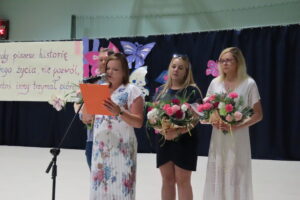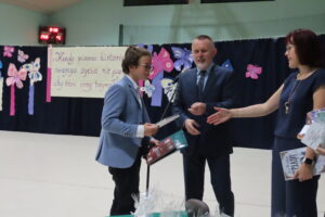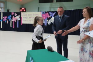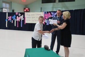 Na ręce rodziców złożono również listy gratulacyjne i podziękowania. Część oficjalną zakończył polonez w wykonaniu ósmoklasistów. Absolwenci przygotowali krótki program artystyczny, podczas którego podziękowali wszystkim pracownikom szkoły na czele z dyrekcją oraz rodzicom. Z kolei uczniowie klas siódmych żegnając starszych kolegów, podziękowali im za to, że dzięki nim dowiedzieli się czym jest szkoła przetrwania.