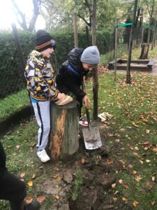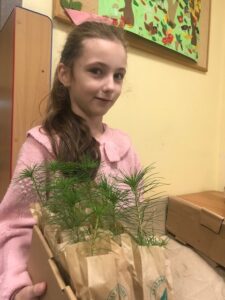 Z tym przesłaniem, dzieci uczestniczące w zajęciach świetlicowych w ramach ogólnopolskiej akcji” #SADZIMY” znalazły miejsce dla otrzymanych z Nadleśnictwa w Andrychowie sadzonek sosny.