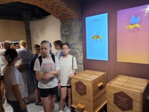 W piątek 6 września grupa złożona z uczniów klasy 6a, 6b, 7b i 8a pod opieką: p. J. Kosar, p. A. Polak, p. A. Zwieńczak udała się do nowoczesnego centrum pszczelarstwa w Kleczy Dolnej. Multimedialna wystawa umieszczona w podziemiach przyciągnęła uwagę młodzieży. Każdy mógł odkryć fascynujące życie pszczół, zgłębić wiedzę dotyczącą pszczelarstwa, znaleźć odpowiedź na pytania: kto mieszka w ulu, jakie są rasy pszczół, dlaczego te owady są takie ważne, na czym polega praca pszczelarza. Uczniowie wzięli także udział w warsztatach, podczas których wykonali świece z wosku pszczelego i mogli skosztować miodu.