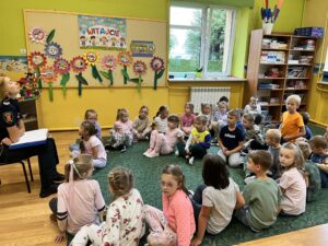 16 września klasy pierwsze uczestniczyły w spotkaniu z panią Elżbietą Drzazgą ze Straży Miejskiej w Andrychowie. Celem spotkania było przypomnienie zasad bezpieczeństwa na drogach nie tylko w naszej miejscowości, ale również w większych miastach. Pierwszaki wiedzą już w jaki sposób się poruszać, aby bezpiecznie dotrzeć do celu; czego na drodze robić nie wolno; jak reagować w sytuacjach problemowych. Pamiętamy też o odblaskach i zapewniamy naszego gościa, że zadanie zostało wykonane. Dziękujemy za przekazaną wiedzę.