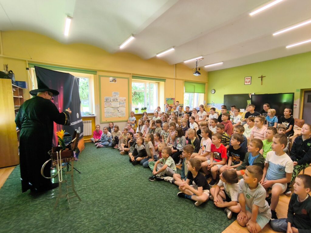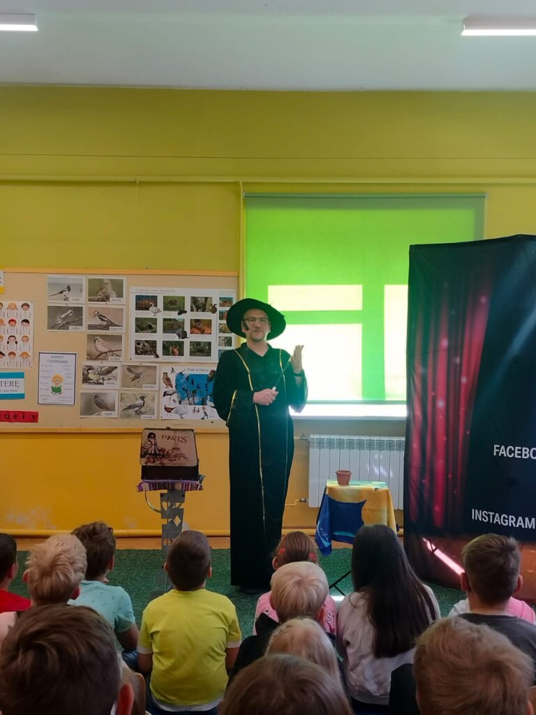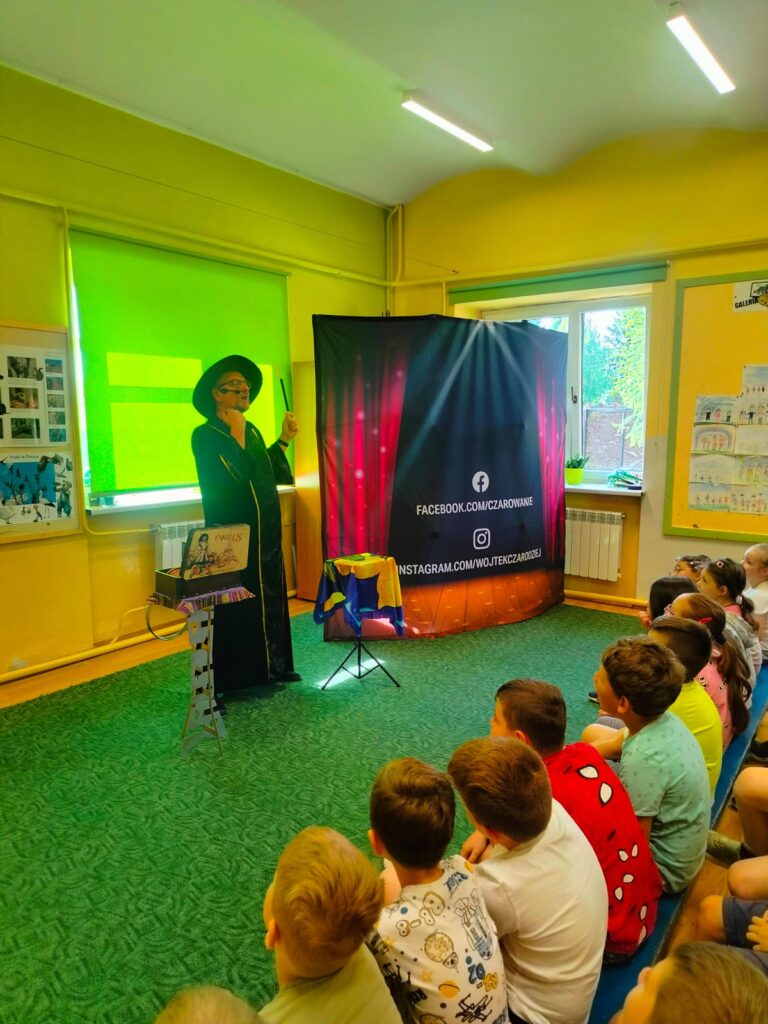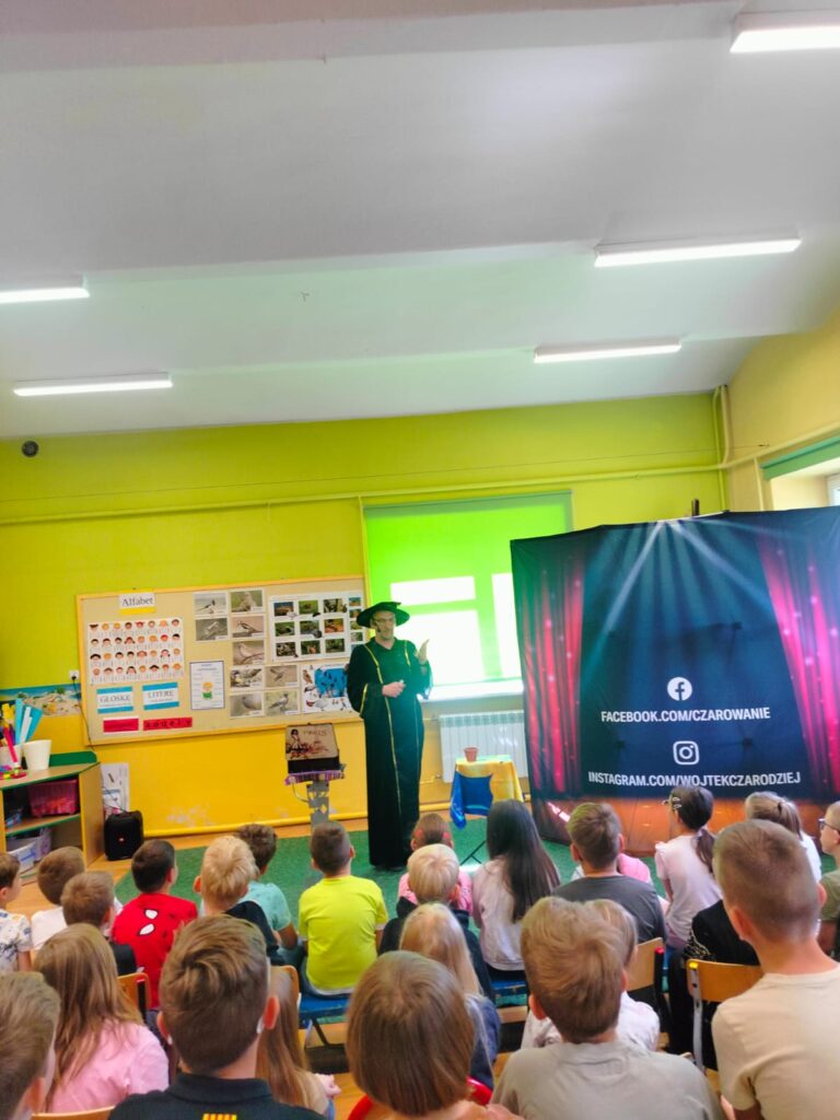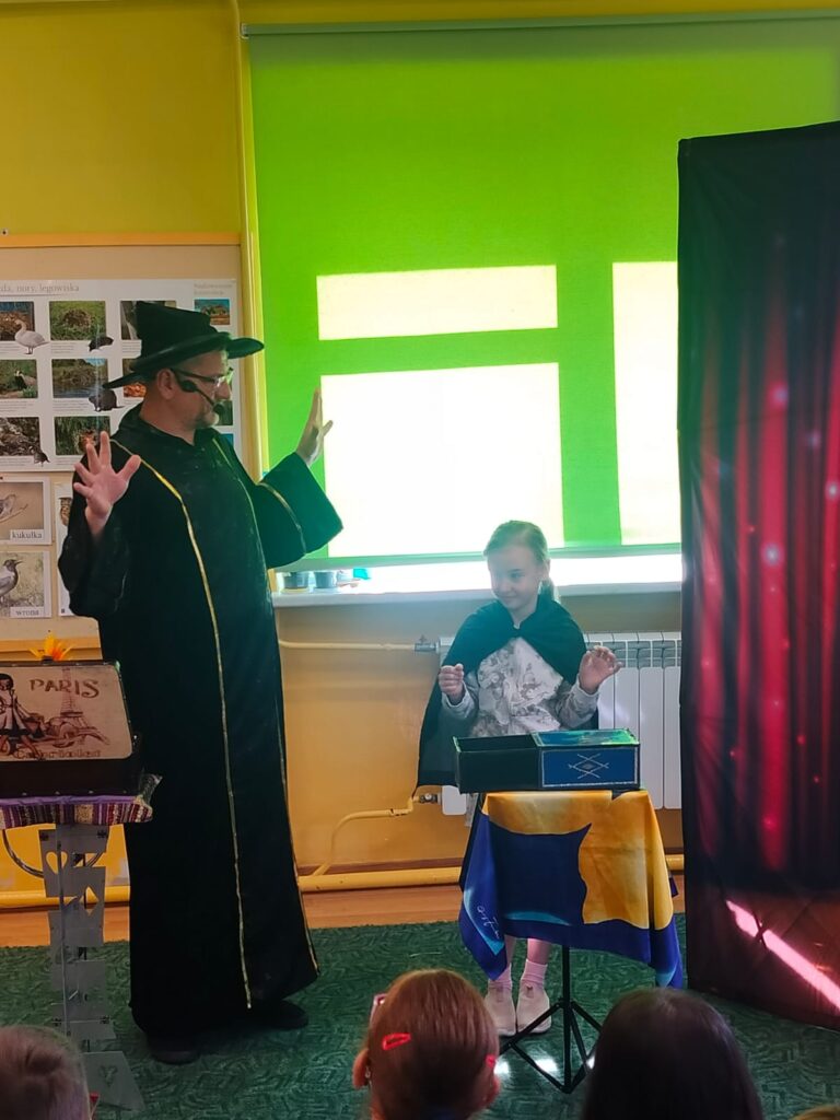 2 czerwca wszystkie dzieci z klas 1-3 przeniosły się w świat magii i iluzji. Była to mała niespodzianka z okazji Dnia Dziecka. Artysta magik zapraszał do pokazu uczniów, których raz po raz zaskakiwał sztuczkami magicznymi, w których sami mogliśmy brać udział. Zadziwił