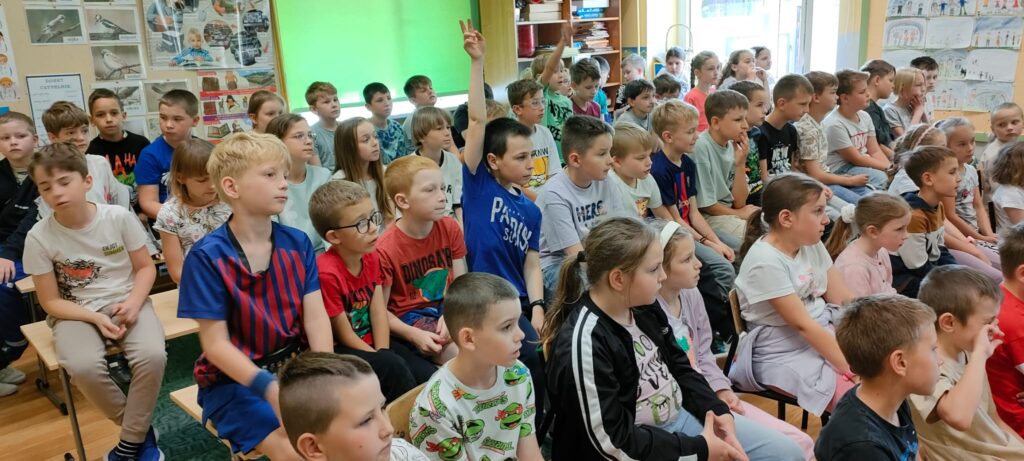 Uczniowie z zainteresowaniem słuchali opowieści naszych gości, oglądali przygotowaną prezentację, filmy i zadawali wiele pytań.