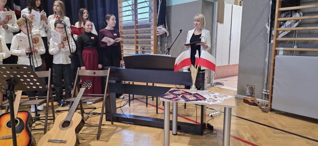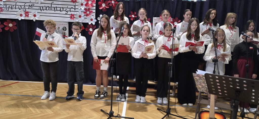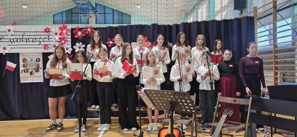 W piątek w naszej szkole odbyła się uroczysta akademia z okazji Narodowego Święta Niepodległości. Uczniowie przygotowali program artystyczny, w którym przypomniano najważniejsze wydarzenia związane z odzyskaniem przez Polskę niepodległości. Występy pełne były refleksji, patriotycznych pieśni i wierszy, a całość stworzyła wyjątkową atmosferę, skłaniającą do zadumy i wdzięczności za wolność. Dziękujemy wszystkim zaangażowanym w przygotowanie tego pięknego wydarzenia.