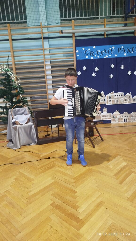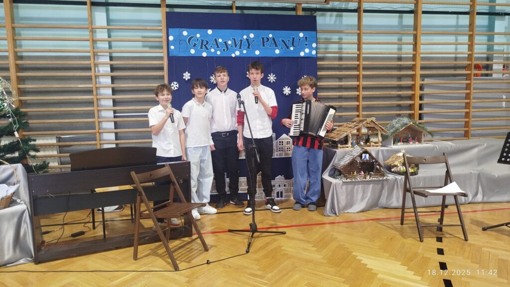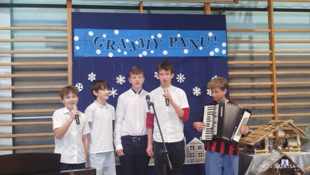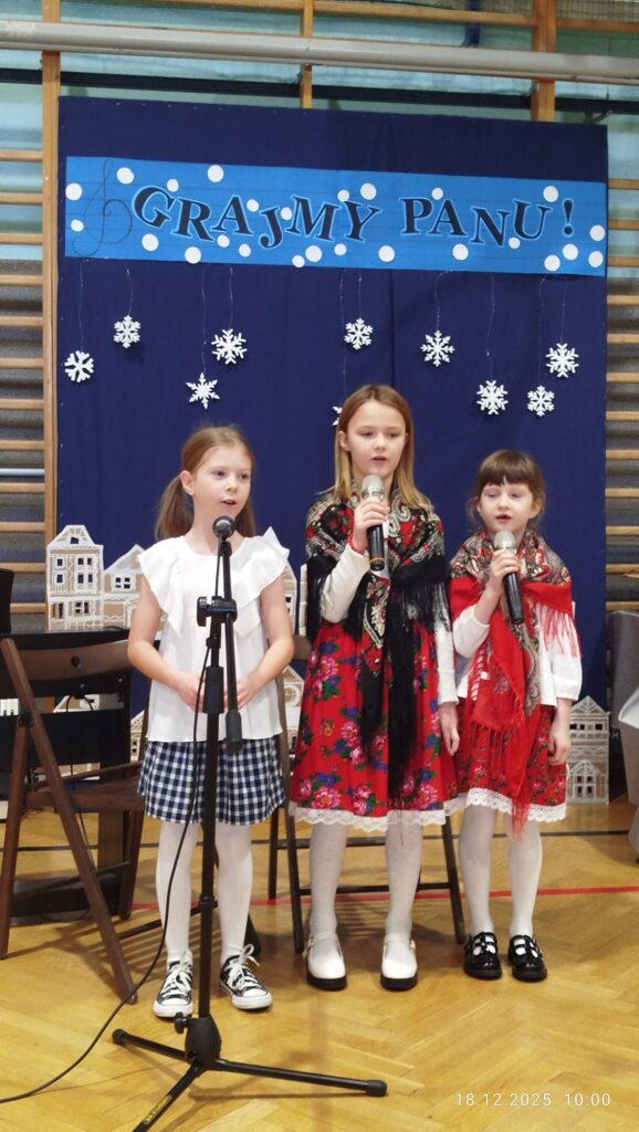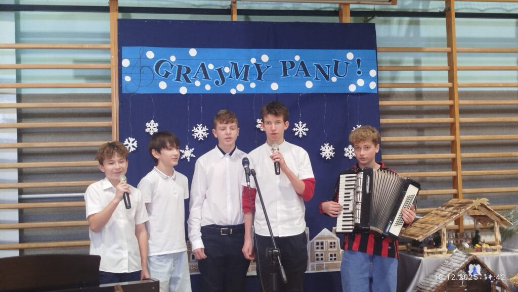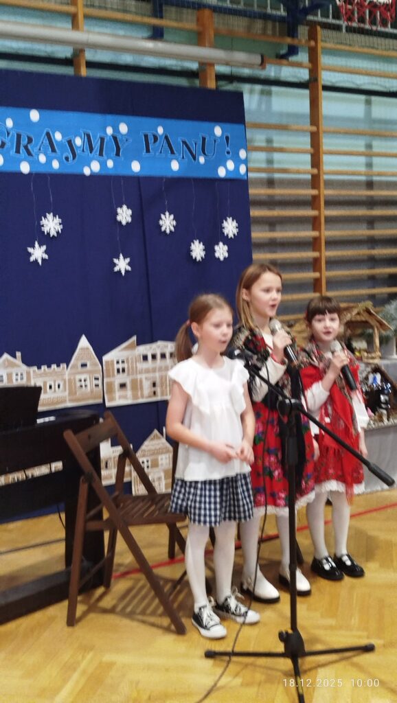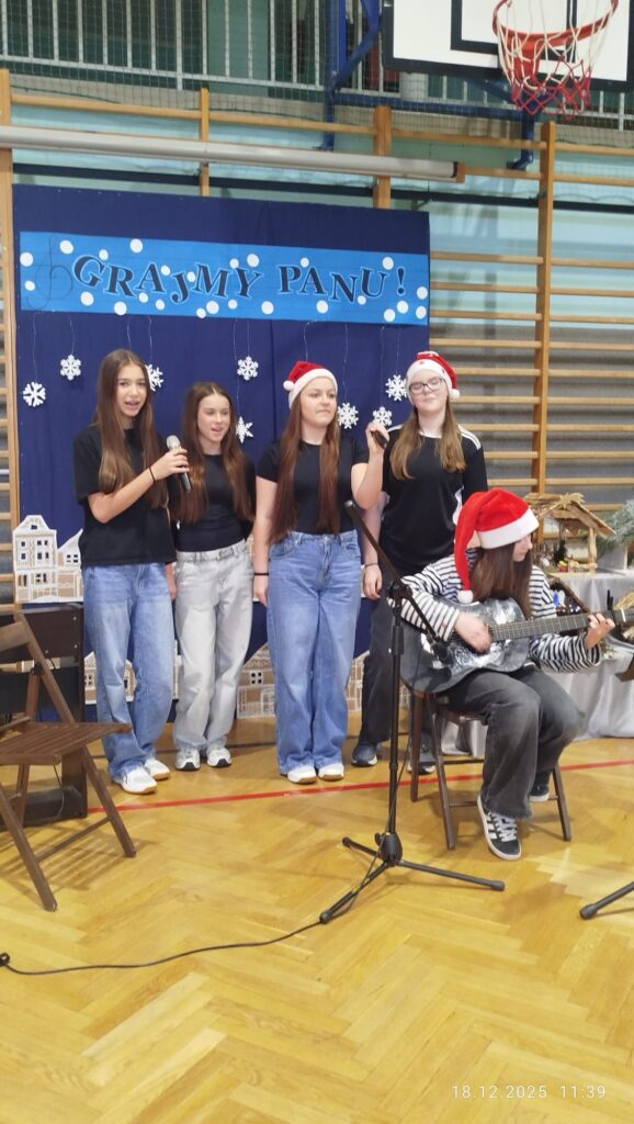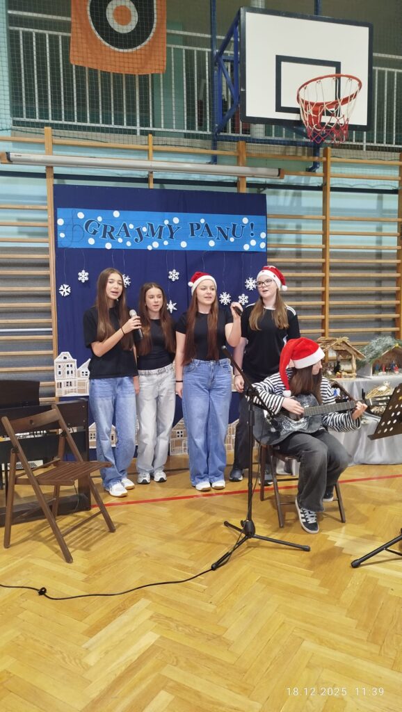 Cieszymy się, że tradycja kolędowania jest u nas ciągle żywa i że mamy tak zdolną i chętną do muzykowania młodzież. Jury w składzie: p. Teresa Gwizdalska, p. Urszula Bylica i p. Elżbieta Grzyb miało ciężkie zadanie, by wybrać najlepsze występy. Ogłoszenie wyników i rozdanie nagród będzie w piątek na apelu przedświątecznym.